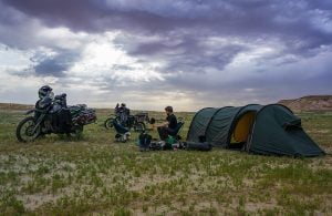 We mostly get up (not too late), have breakfast, pack the tent and our stuff and then get rolling on the bikes. We love to explore nature by taking small gravel roads and we mostly eat our lunch while standing next to our bikes in the middle of nowhere. After some more riding, we try to find the perfect spot to pitch the tent. We then make dinner on our small petrol stove before we have a relaxed evening and go to bed early.